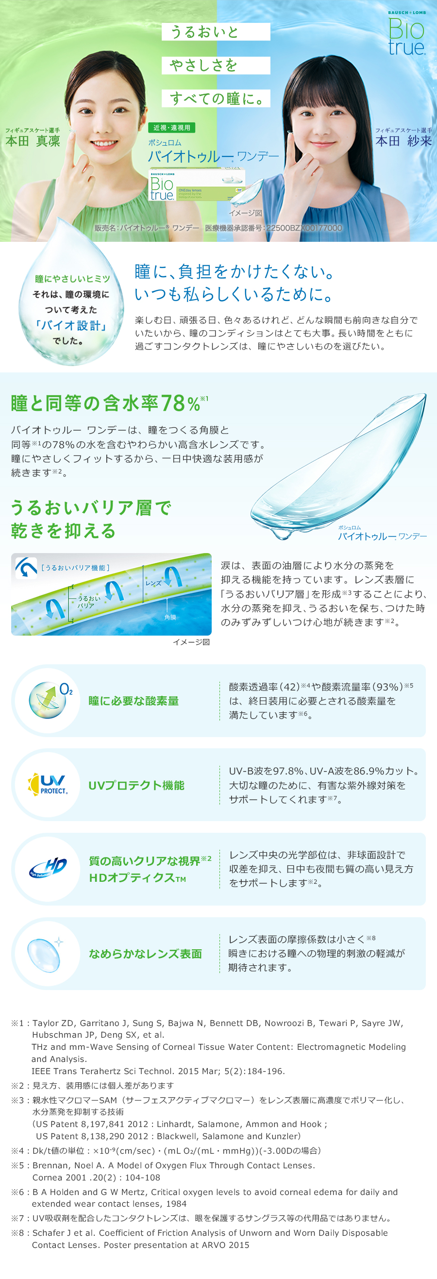 バイオトゥルー ワンデーは、独自素材「ハイパージェル」を採用、含水率78%のやわらかい高含水レンズです。