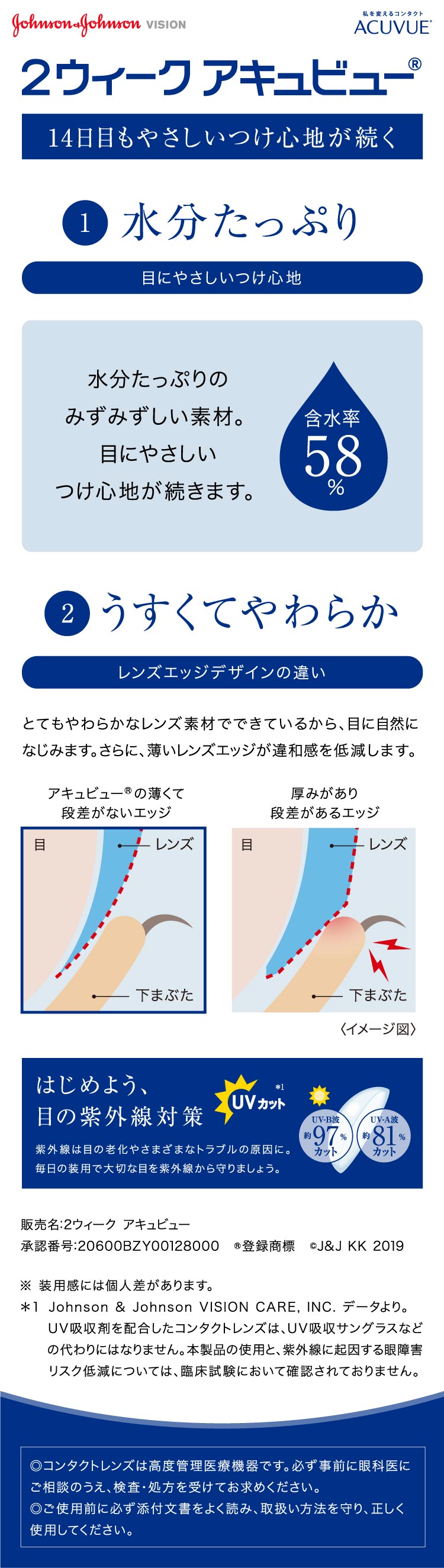 含水率は58%と、水分をたっぷり含んだレンズで自然な付け心地。レンズのふちが薄く目にやさしくフィットします。