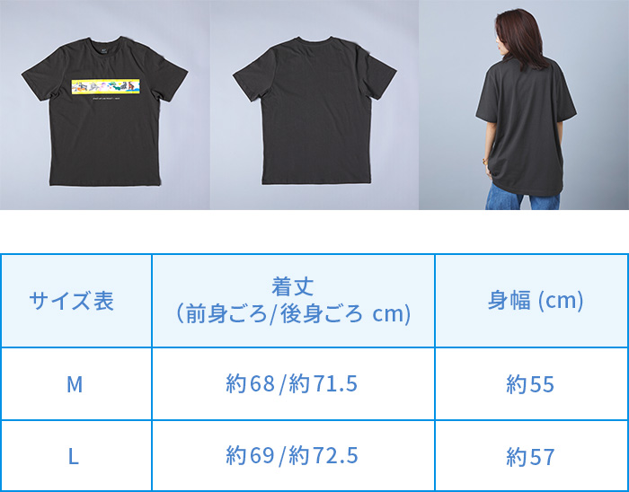 Tシャツサイズ(L)/着丈: 前身ごろ約69cm/後身ごろ約72.5cm 身幅:約57cm