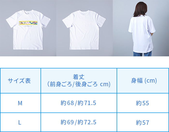 Tシャツサイズ(L)/着丈: 前身ごろ約69cm/後身ごろ約72.5cm 身幅:約57cm